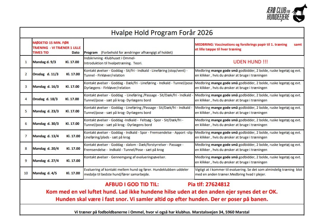 Hunden skal være vaccineret & forsikret inden indskrivningen i klubben.