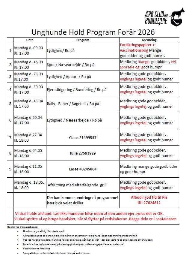 Tilmelding til ungehund holdet kontakt Pia Christensen.
