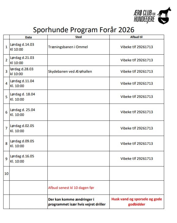 Trænings start: Lørdag d.14-03-2026 Kl. 10:00