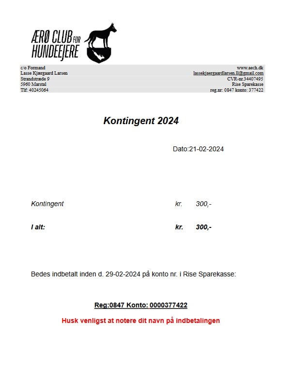 Bestyrelsen foreslår at kontingentet forbliver uændret: