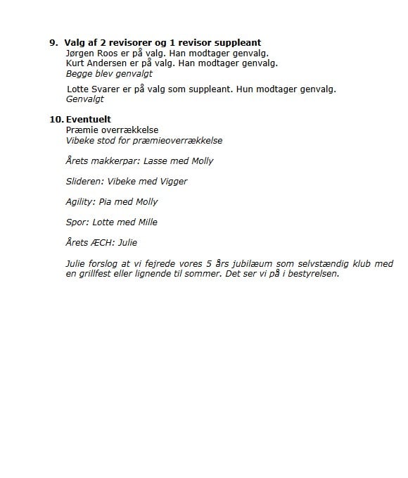 9. Valg af 2 revisorer og 1 revisor suppleant